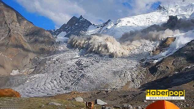 Karların hızla aşağı sürüklenişini şaşkınlıkla izleyen araştırmacılar bir yandan da çığı daha yakından görebilmek için ona doğru yürüdü.